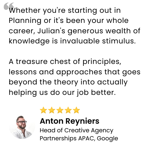 With a void of practical strategy education, Julian founded the Strategy Finishing School (previously Planning Dirty Academy) in 2019.